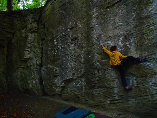 Minuten seht ihr auf der rechten Seite eine Felswand. Bolts für die Seilsicherung sind in der Felswand eingelassen. Da sie aber nicht sehr hoch ist, macht Bouldern deutlich mehr Spass. Die Wand