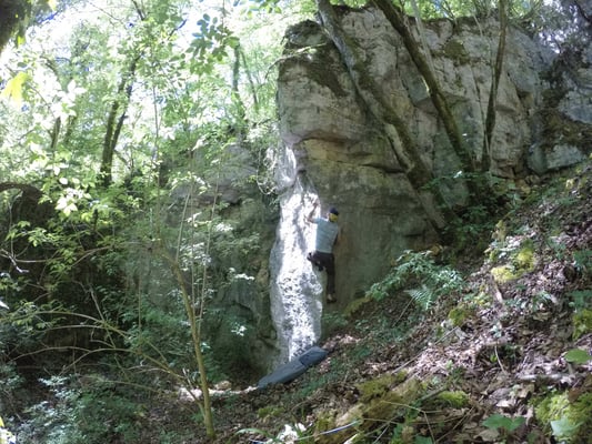Hier findest du "gerade Wände" von Fb 4b bis 6c. Das Ambiente ist klassisch für diese Region und natürlich sehr schön. Alles nahe beieinander und man findet sich auch gut ohne Boulderführer zurecht.