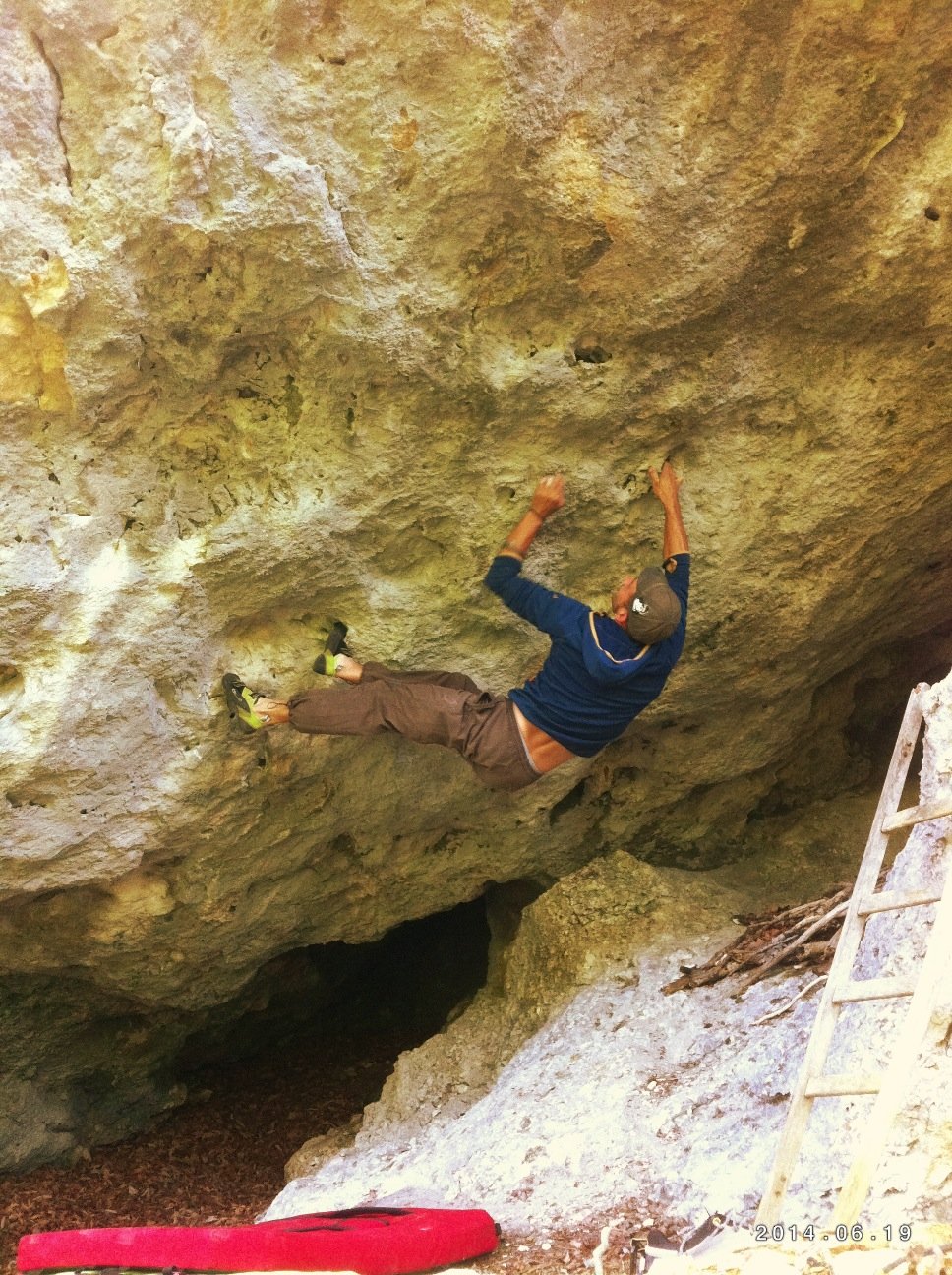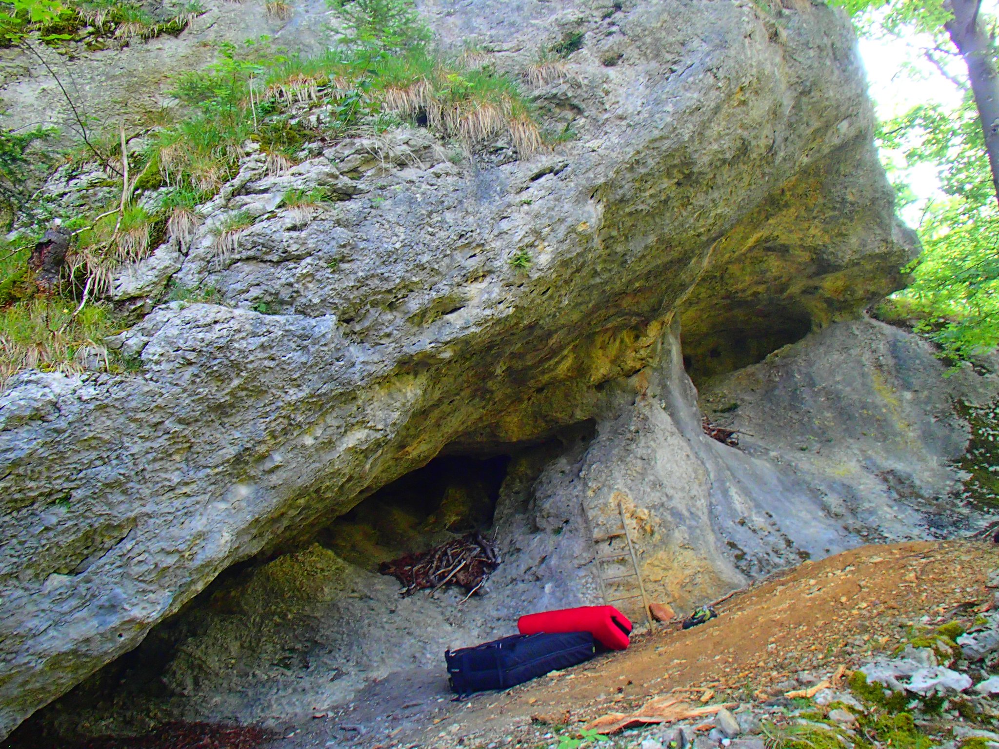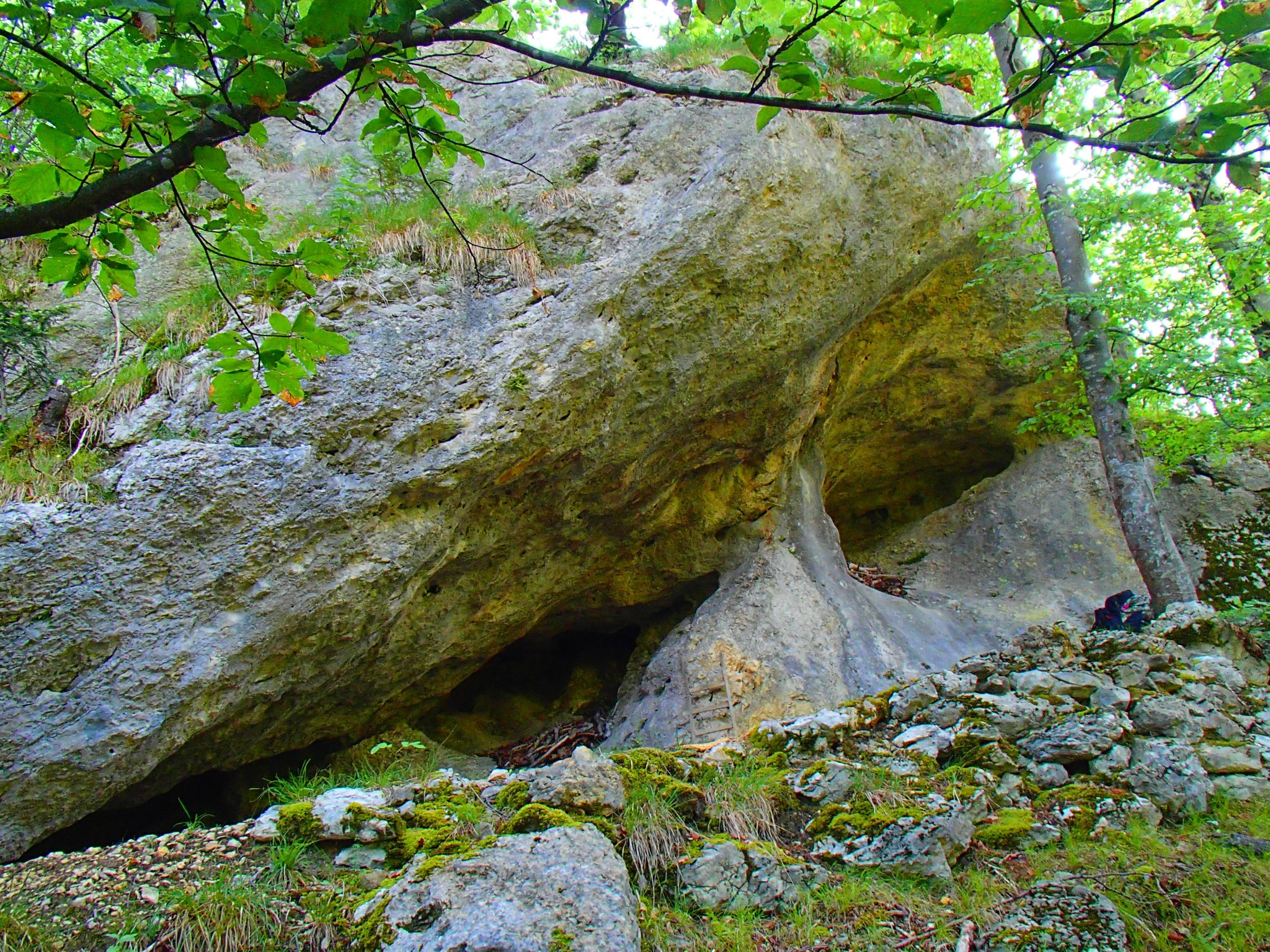 Direkt auf der anderen Strassenseite befindet sich der Parkplatz (Street View). Der Forststrasse folgen und nach ca. 40 Schritten rechts hinauf zum Mushroomcave.