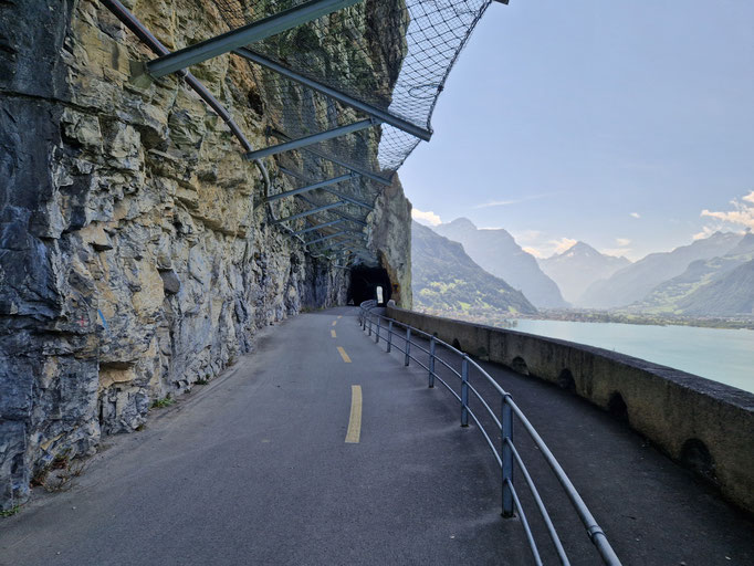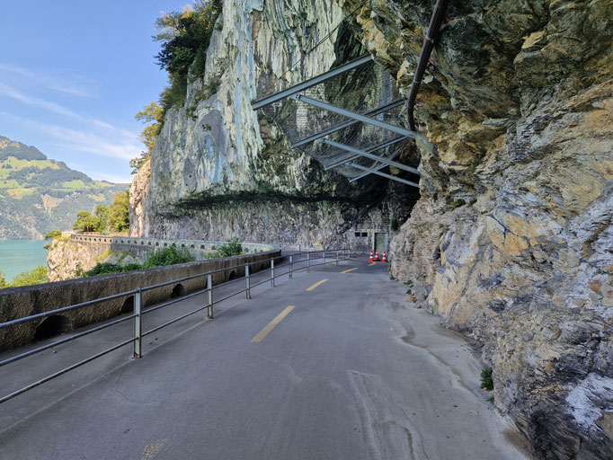 Axenstrasse entlang (wahrscheinlich die längste Traverse die ich kenne).