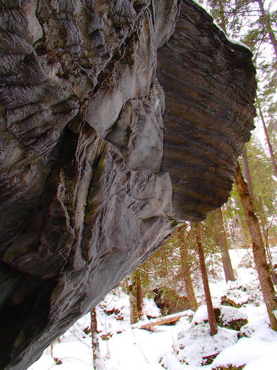 Eine dünne Eisschicht hatte sich über die Felsen gelegt. Über jeden Quadratzentimeter spannte sich das zähe Eis, egal auf welcher Seite man nachsah! Hier wäre also eher Bouldern mit Eispickeln angesagt gewesen. Ich versuchte die wichtigsten Stellen frei zu kriegen, musste mich aber dem Wetter geschlagen geben: Bandolino blieb im Eis gefangen.