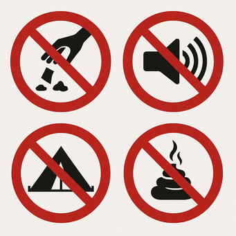 Müll (auch Biomüll), Lärm, Wildcampen und Fäkalien schaden nicht nur der Natur, sondern auch dem Ansehen unserer ganzen Gemeinschaft.
