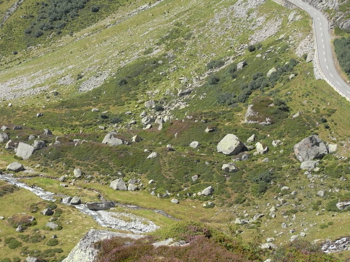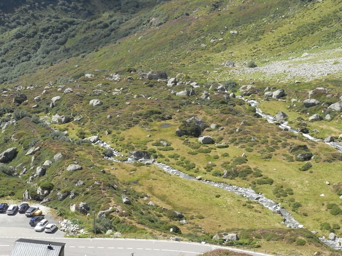 Das Bouldergebiet liegt, wie der Name schon sagt, auf dem Weg über den Sustenpass auf ca. 2000m. Die 34 Blöcke (Gneis/Granit) liegen gleich beim Restaurant