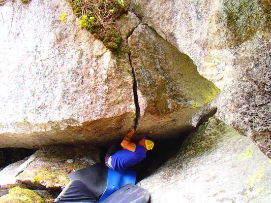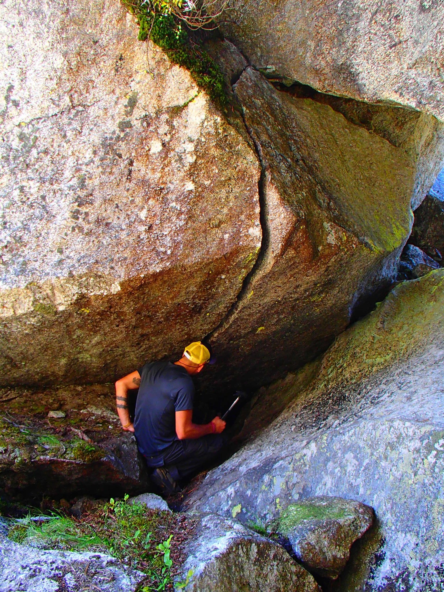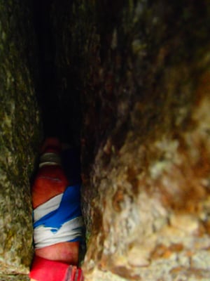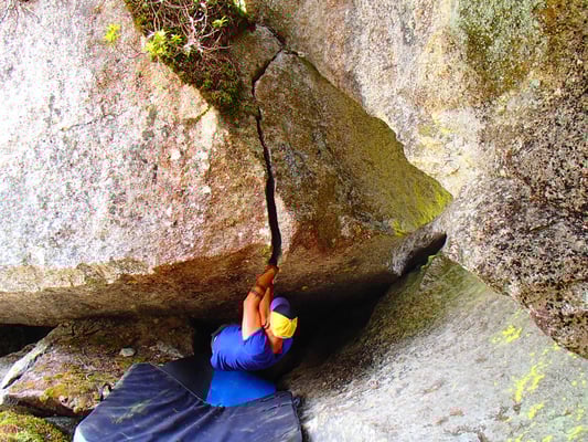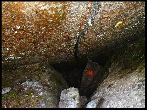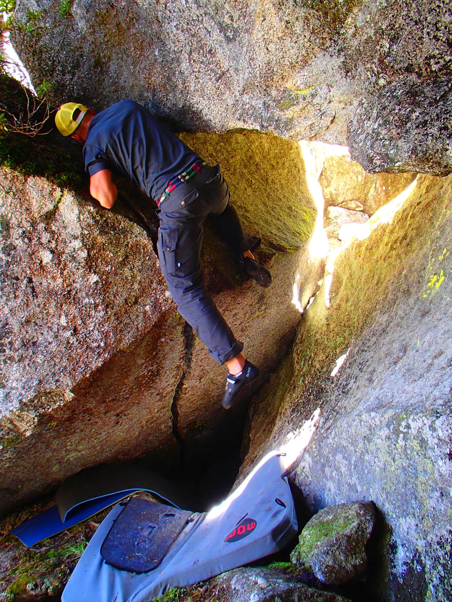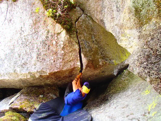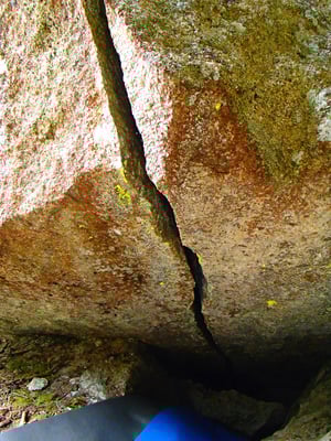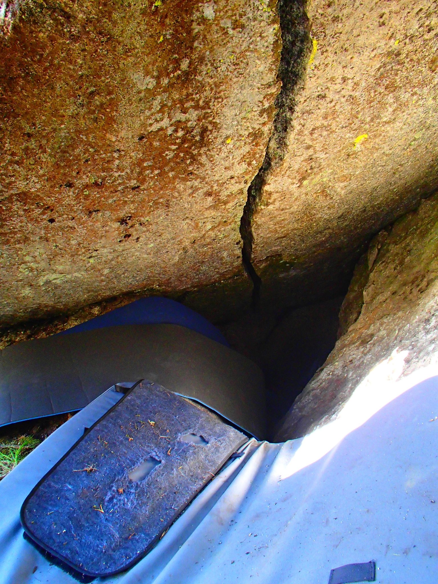 Das Ding würde zugleich auch den Weg in eine Kleine Höhle  öffnen. Und vielleicht ermöglichte dies noch eine Variante mehr, um diesen Riss zu Bouldern.