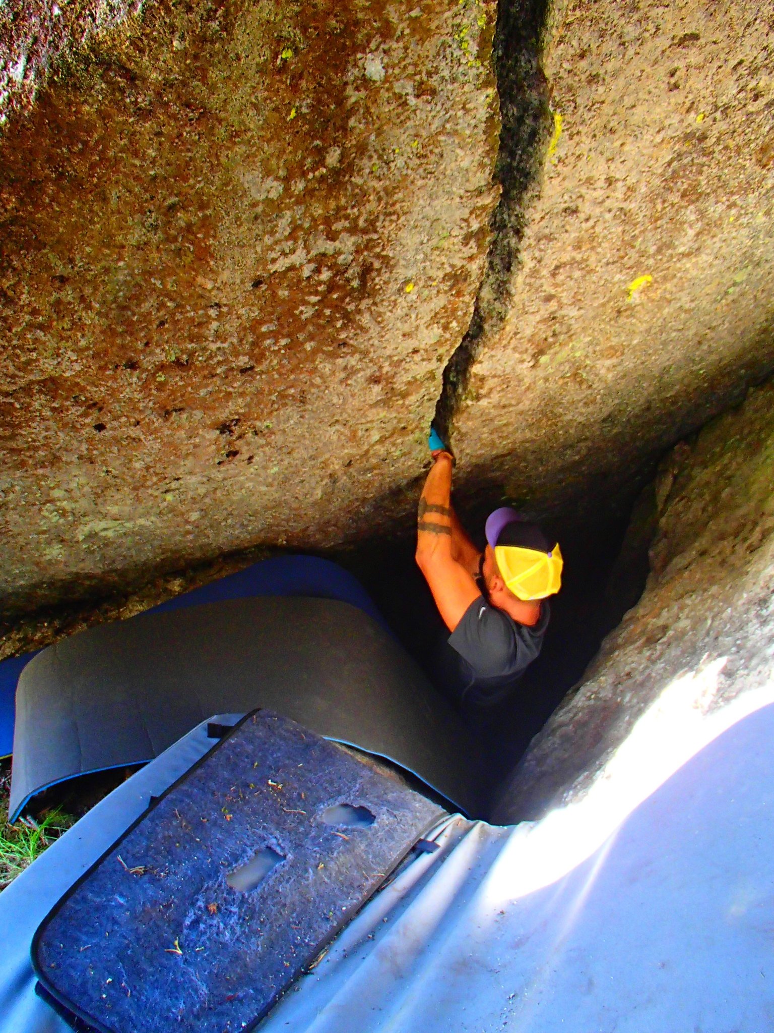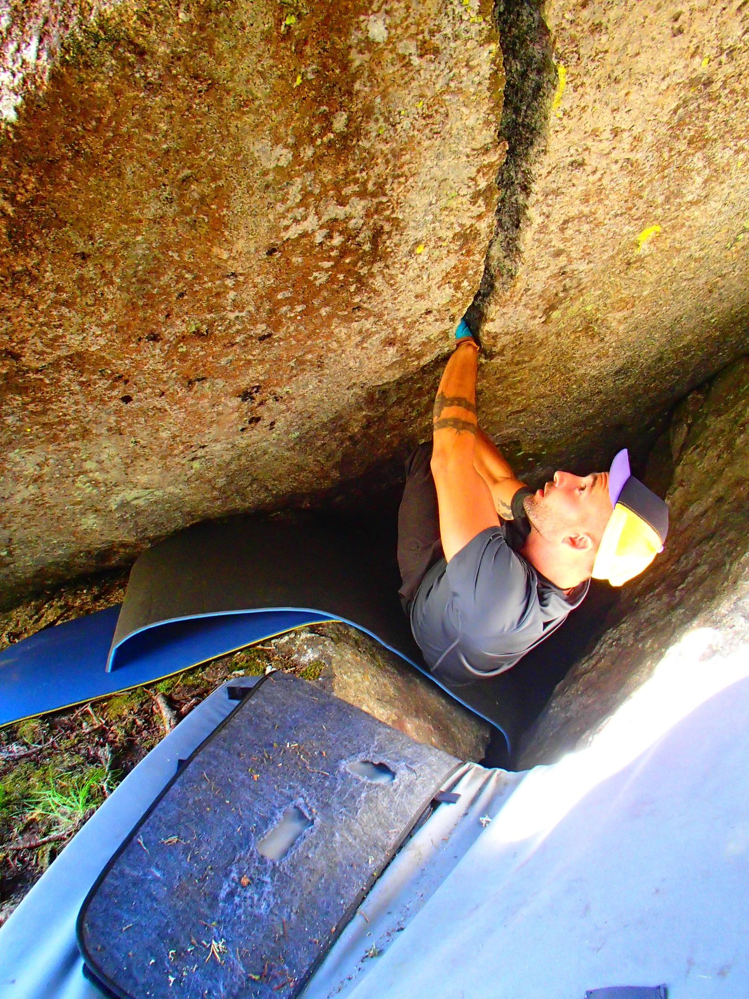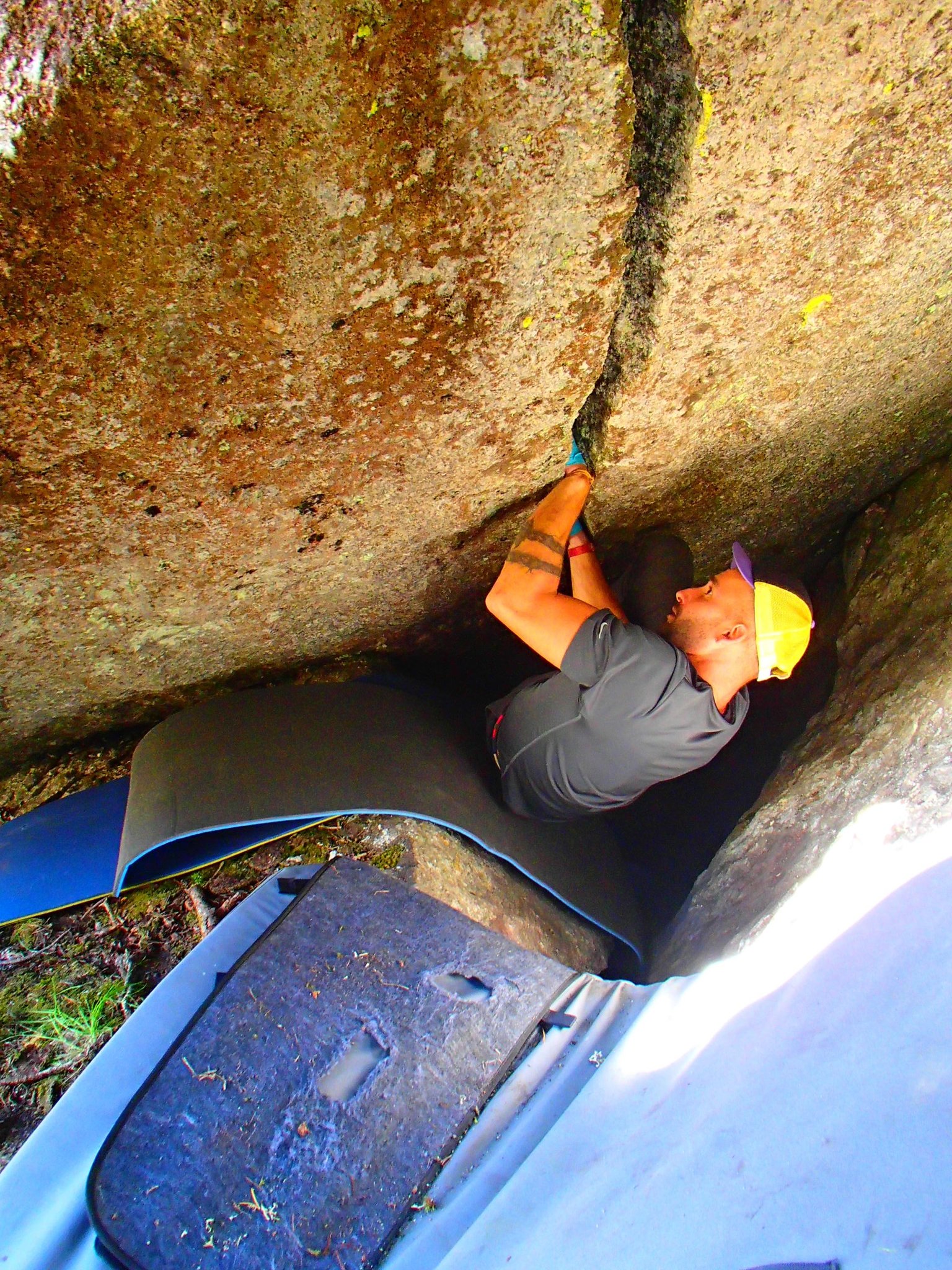 Heute standen ganz andere Blöcke auf dem Programm! Auf dem Weg zur Feuerstelle musste ich natürlich noch beim "Bitterzarten Riss" vorbei. Dieser Brocken lässt mir einfach keine Ruhe und so musste ich auch dieses Mal versuchen, das Ding mit meinen Beinen weg zu drücken. Und siehe da: er bewegte sich zum ersten Mal. Stück für stück drückte ich ihn zur Seite. Und dann verkeilte er sich erneut und klemmte unglücklicherweise meinen Fuss gleich noch mit ein. Für einen kurzen Moment dachte ich, es ergehe mir wie in 127 Hours. Aber ich hatte ihn dann doch schon nach 127 Sekunden an einem Stück wieder frei! zum Glück! bis auf Schmerzen in der Achillessehne, bin ich noch einmal unbeschadet davon gekommen. Ein Hammer steht jetzt zu oberst auf meiner Packliste und mit ihm die Hoffnung, den Riss ganz frei zu bekommen :)