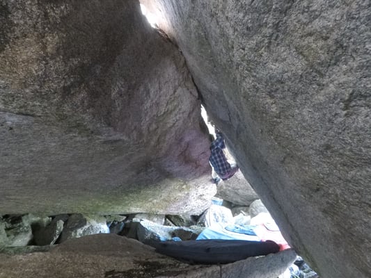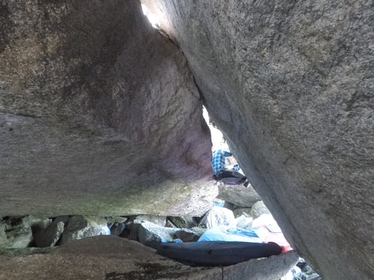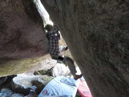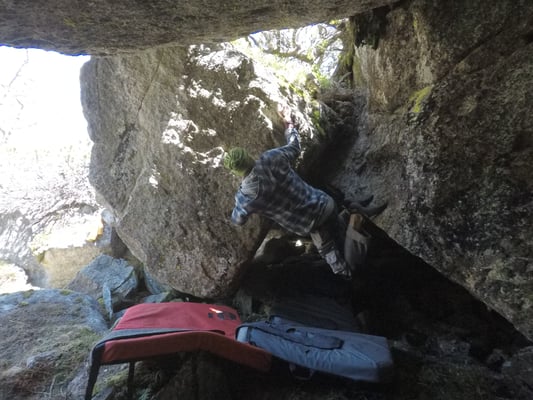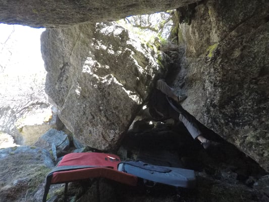 Wer durch diese Grotte Bouldern will benötigt 100% Körpereinsatz, Beweglichkeit und sollte seine Technik auf Muskelkrämpfe vorbereiten!