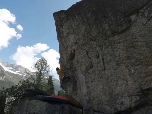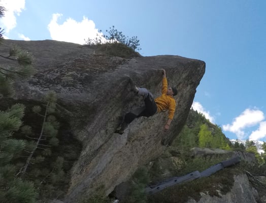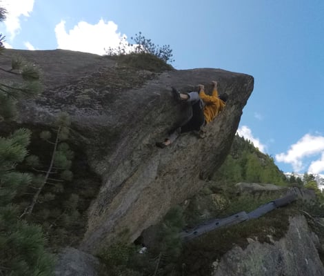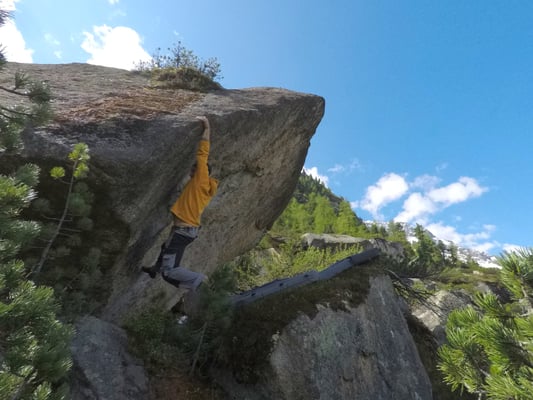 kann auch gebouldert werden! Links geht es ganz schön weit runter und eine andere Lösung für den Spotter muss gefunden werden! Und dann ist hier bestimmt noch viel mehr drin. Aber das ist ein
