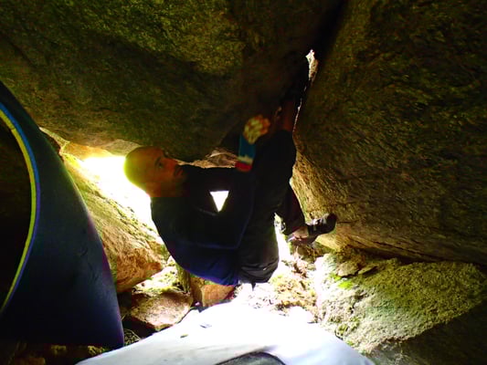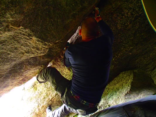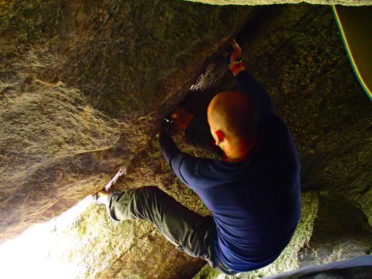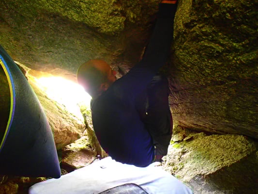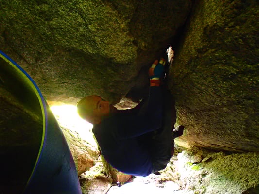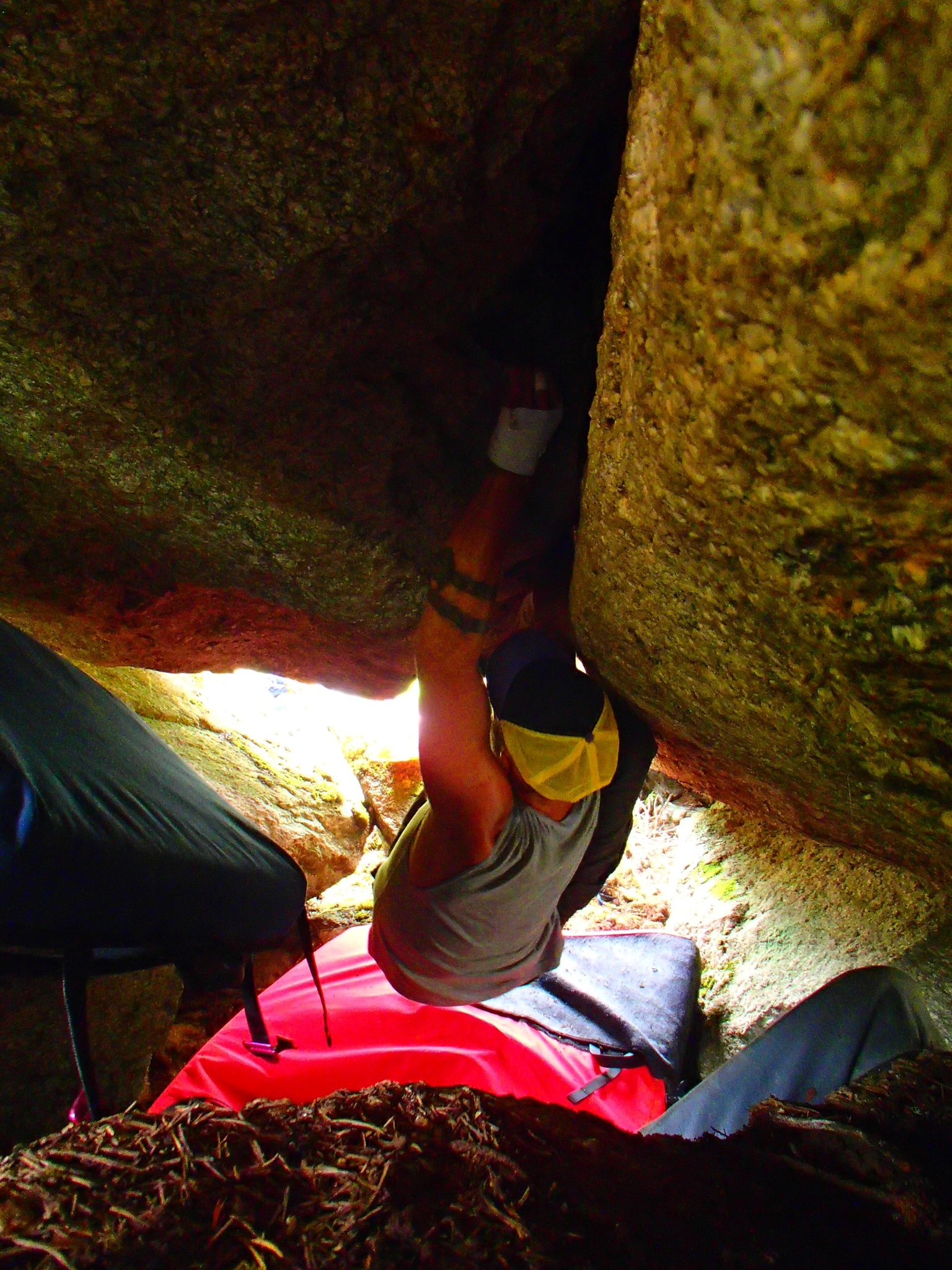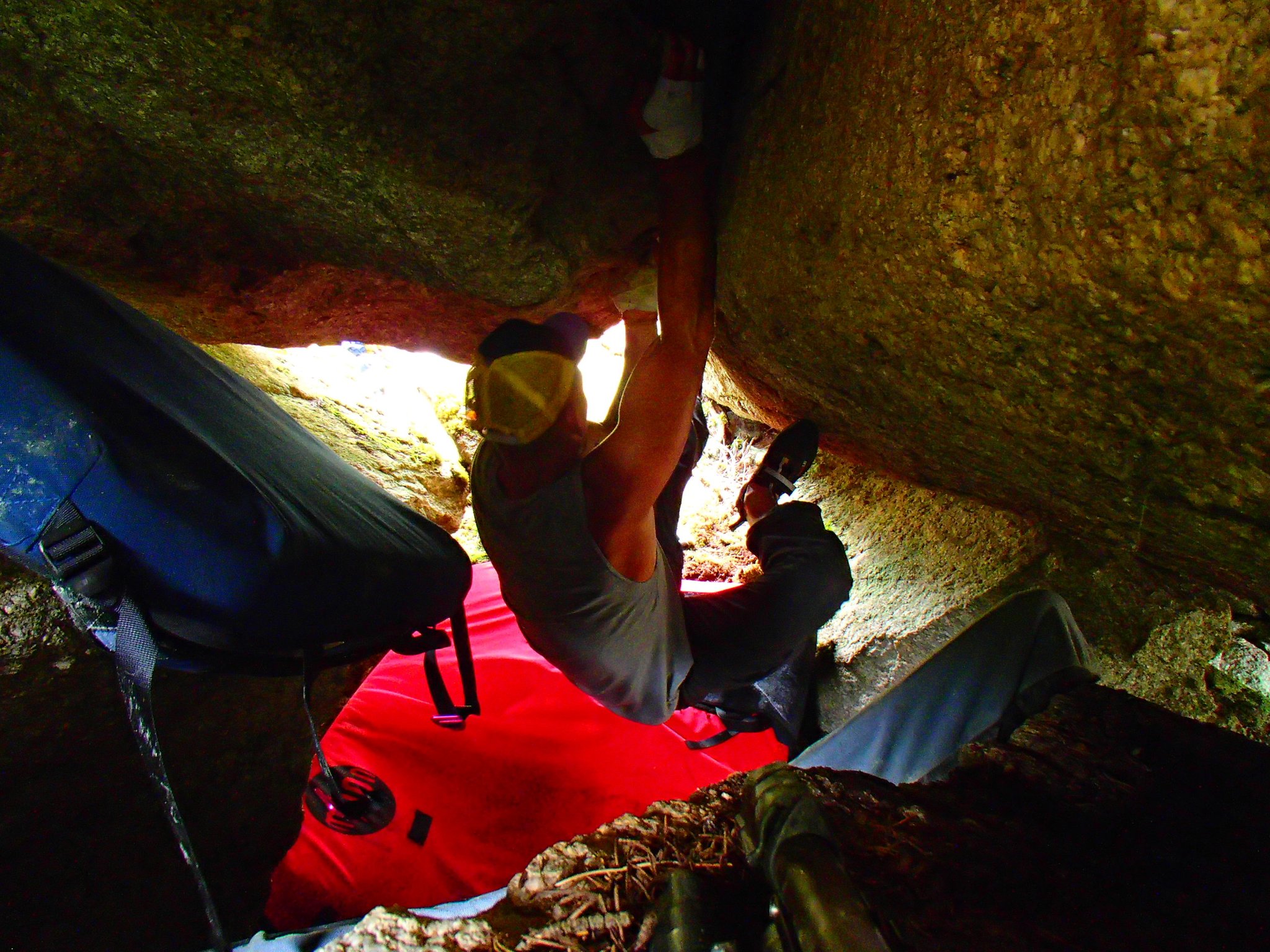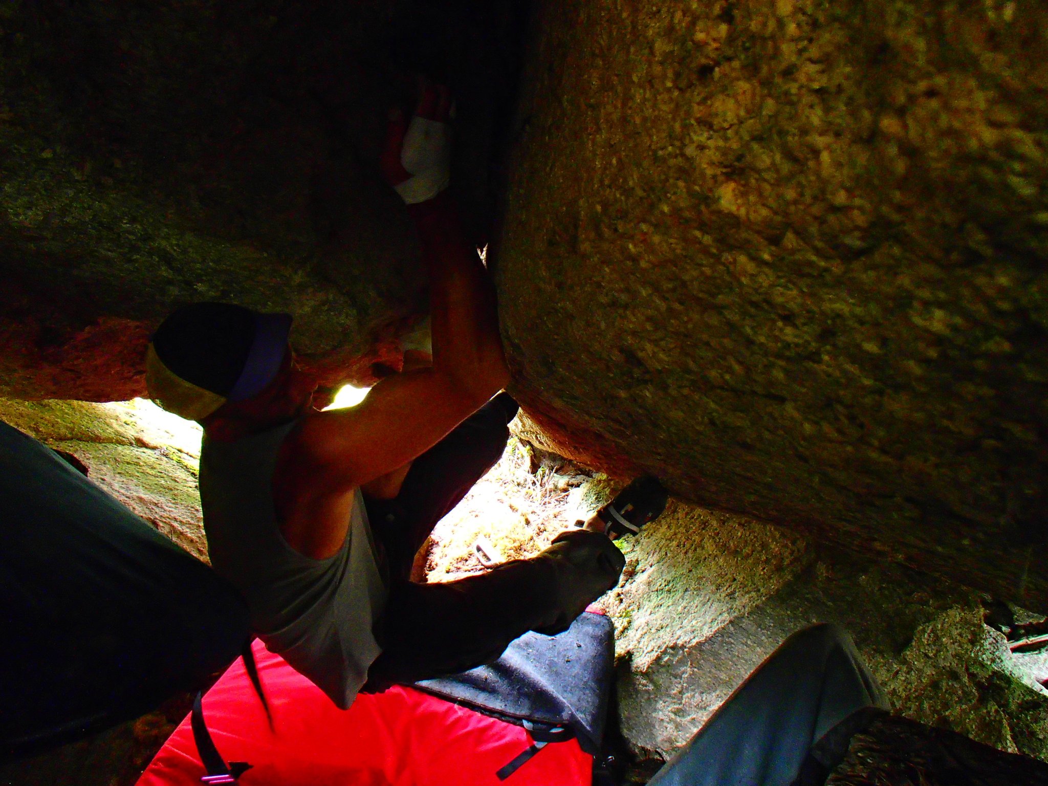 Für die einzelnen Züge muss viel Kraft eingesetzt werden, dazu darf die Körperspannung natürlich nie aussetzen. Eine Kombination, die beim verkeilen zwischen den beiden Felsen auch sehr schmerzhaft werden kann!