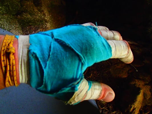 Danach kann die Hand mit dem Medi Tape umwickelt werden. Man kann es so satt anlegen wie eine Bandage.